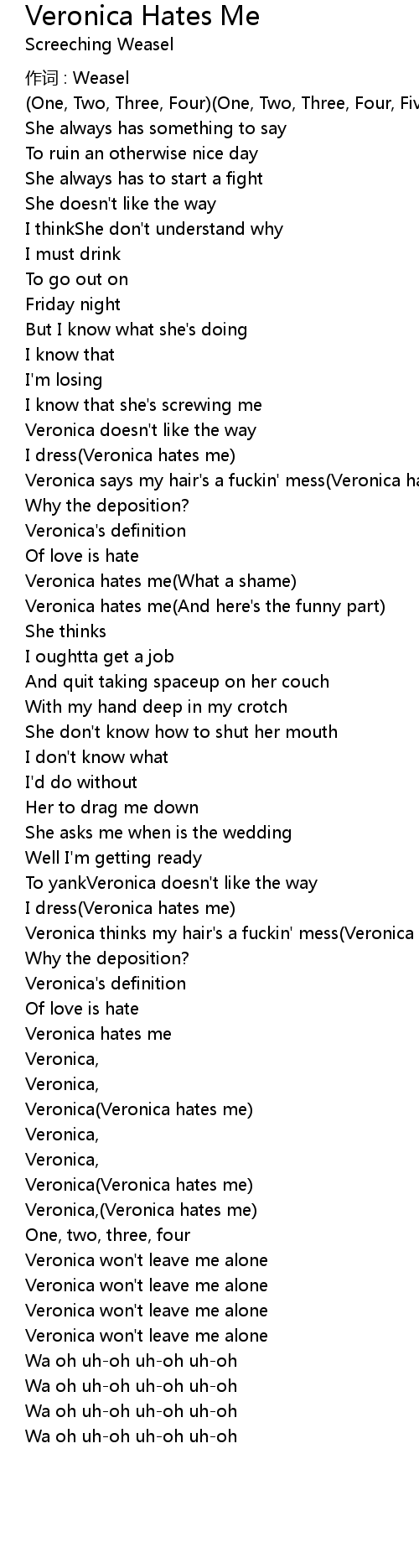 | Veronica says my hair' s a fuckin' mess Veronica hates me | |