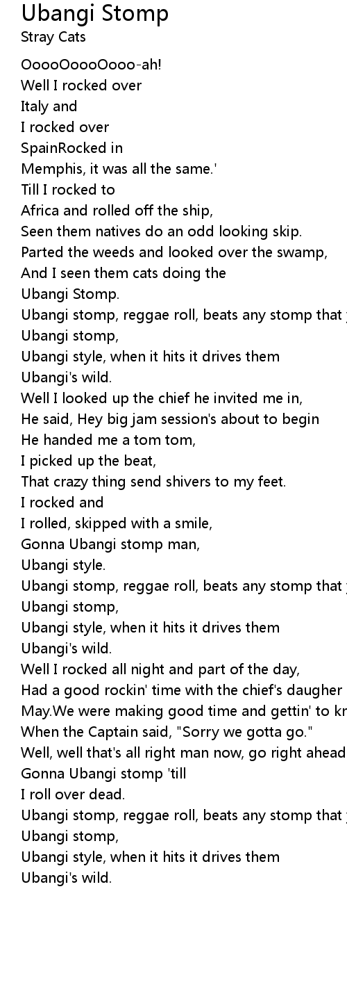 Ubangi stomp, reggae roll, beats any stomp that you ever been told. |