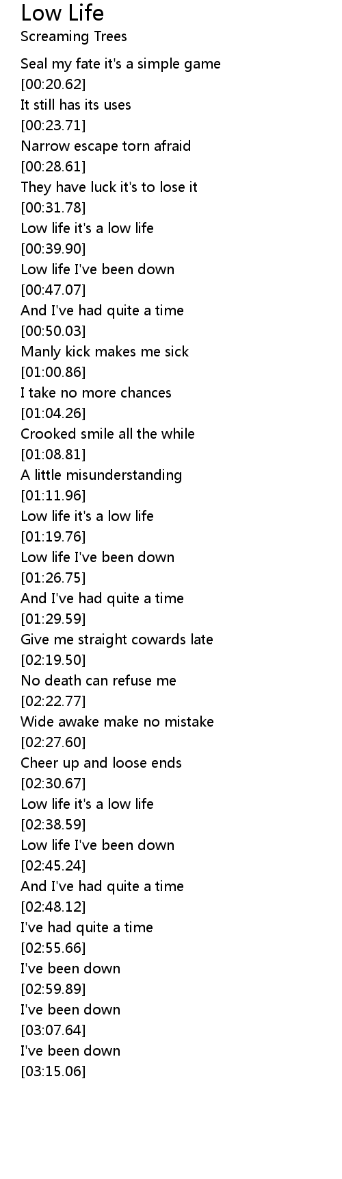 Low life I've been down |