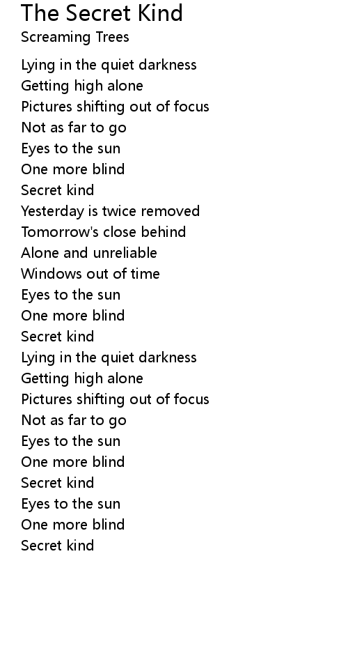 | 歌曲 | The Secret Kind |
