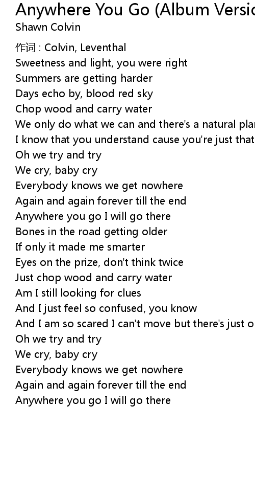 | Anywhere you go I will go there |