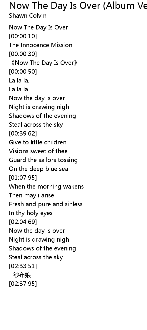 | [00:00.40] | 《Now The Day Is Over》 |