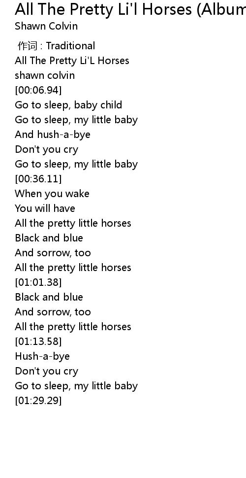 | [00:43.06] | All the pretty little horses |