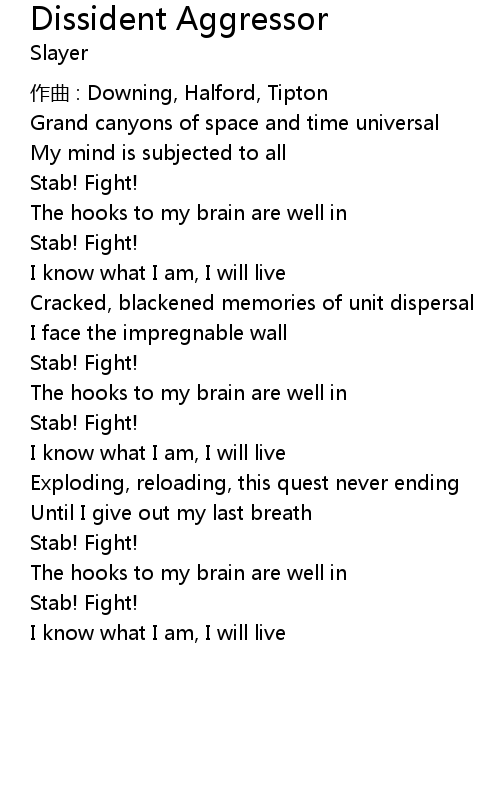 | 歌曲 | Dissident Aggressor |