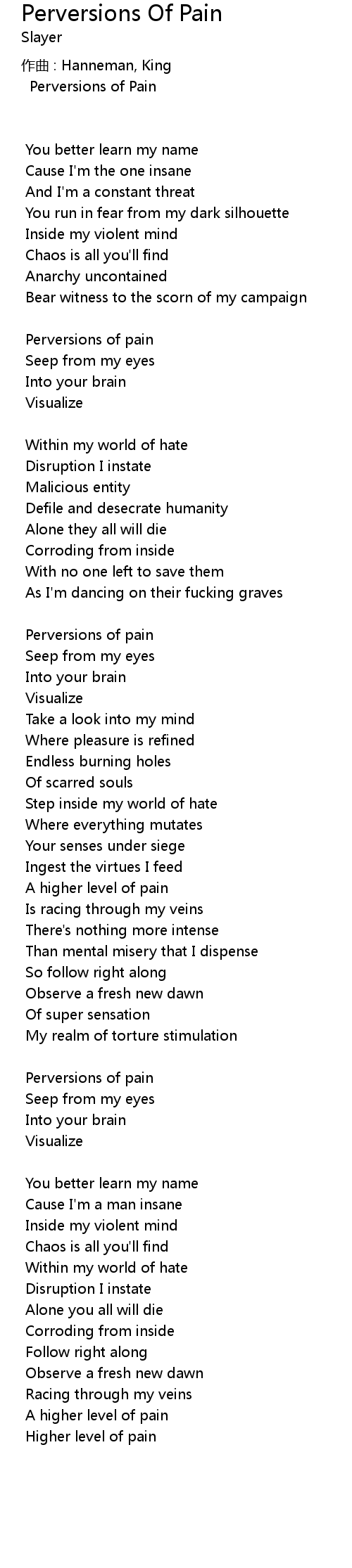 | 歌曲 | Perversions Of Pain |