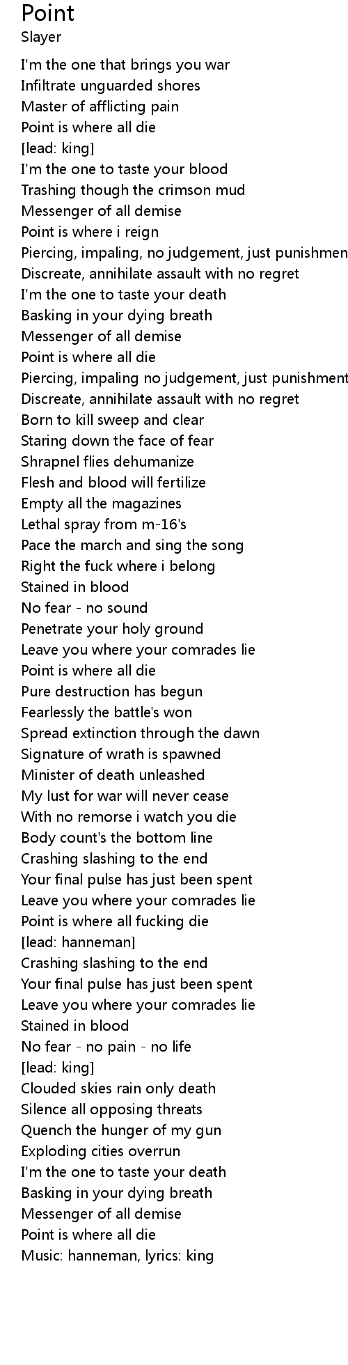Music: hanneman, lyrics: king |