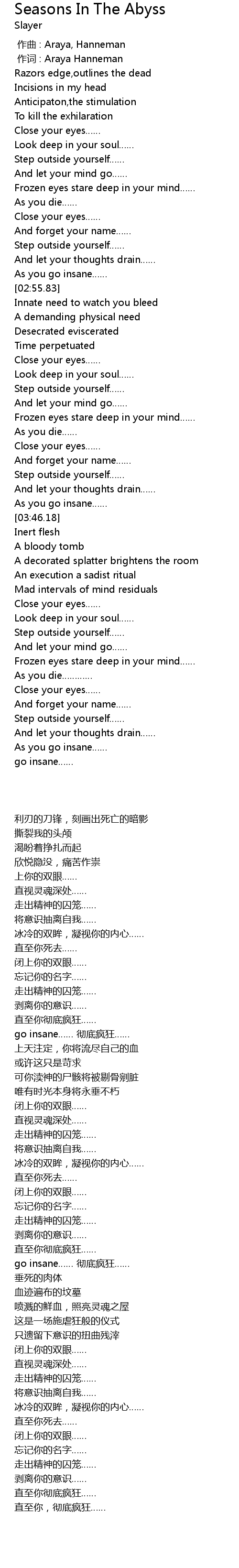 | [02:55.83] | go insane…… 彻底疯狂…… |