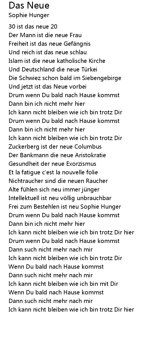 | Ich kann nicht bleiben wie ich bin trotz Dir hier |
