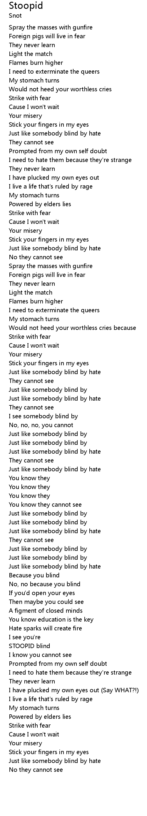 | Just like somebody blind by hate | |