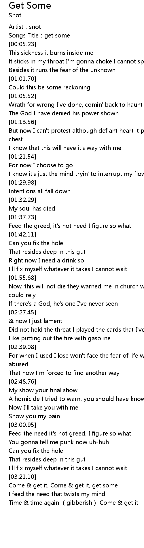 | [03:04.14] | Feed the need it' s not greed, I figure so what |