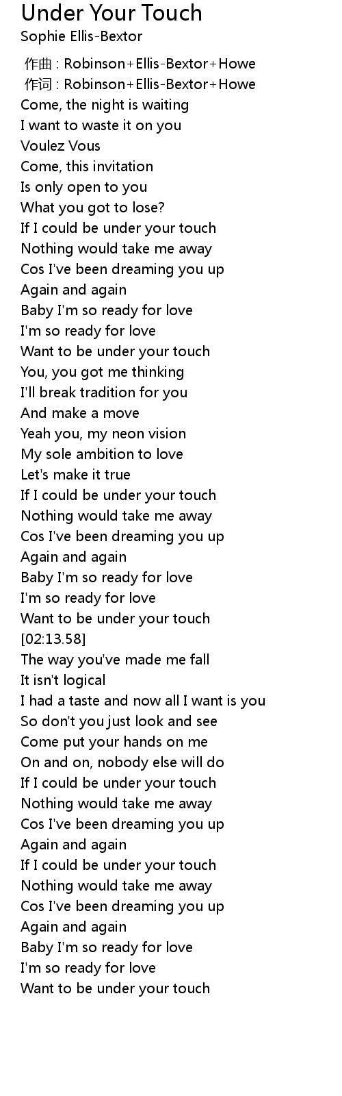 | [02:07.52] | Want to be under your touch |