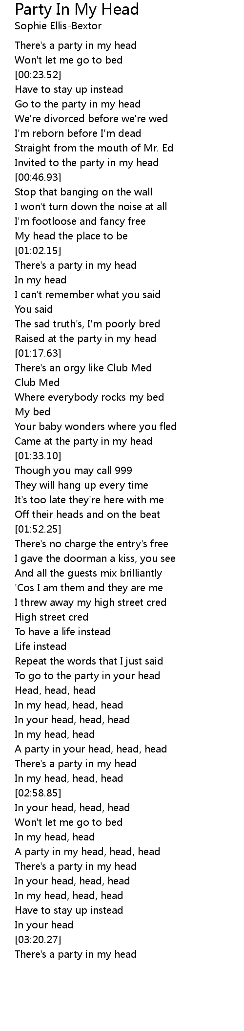 Go to the party in my head |