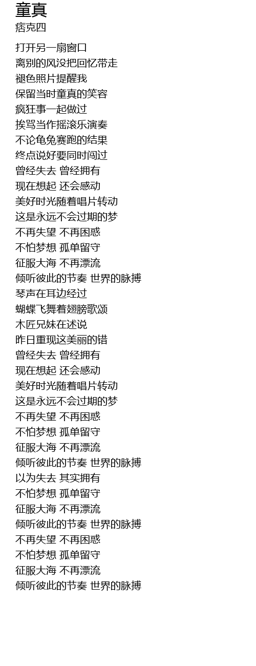 | [01:10.73] | 保留当时童真的笑容 |