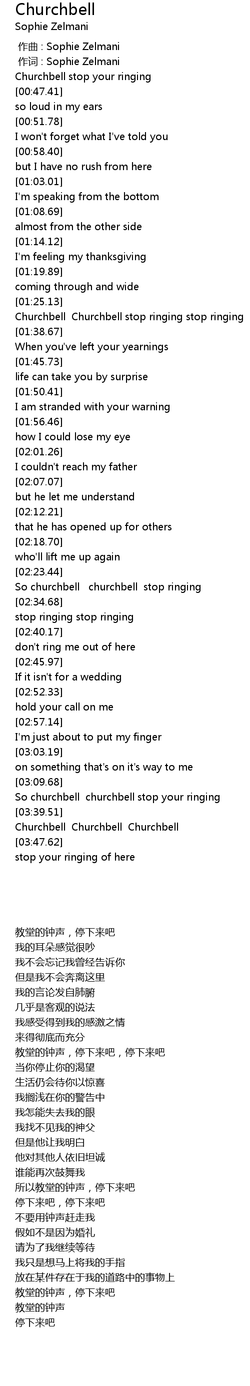 | [03:40.88] | Churchbell Churchbell Churchbell |