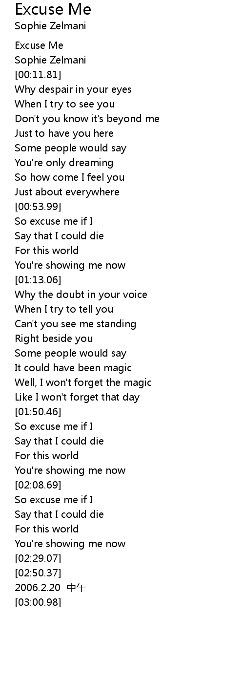 | [00:05.16] | Excuse Me |