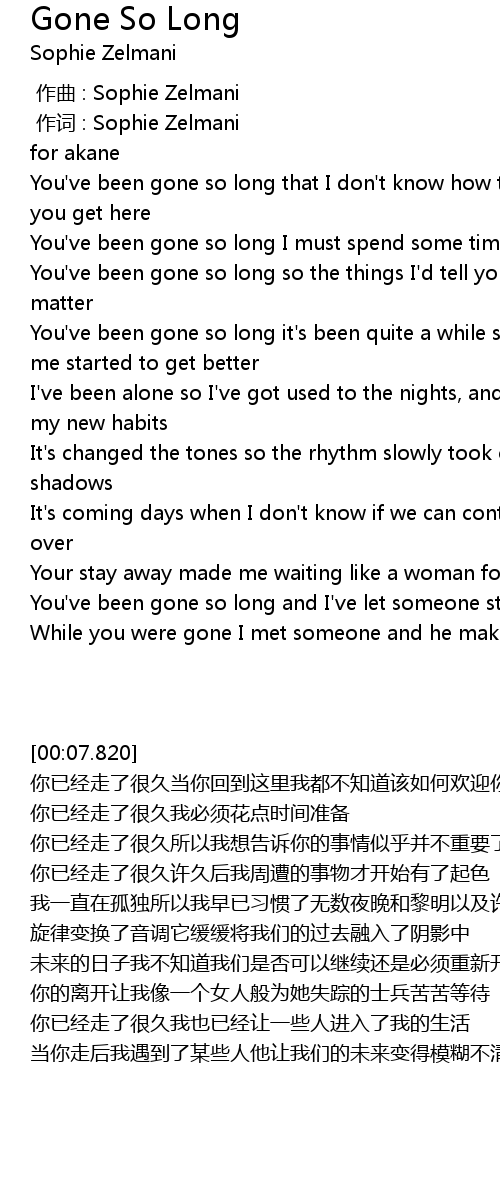| 歌曲 | Gone So Long |