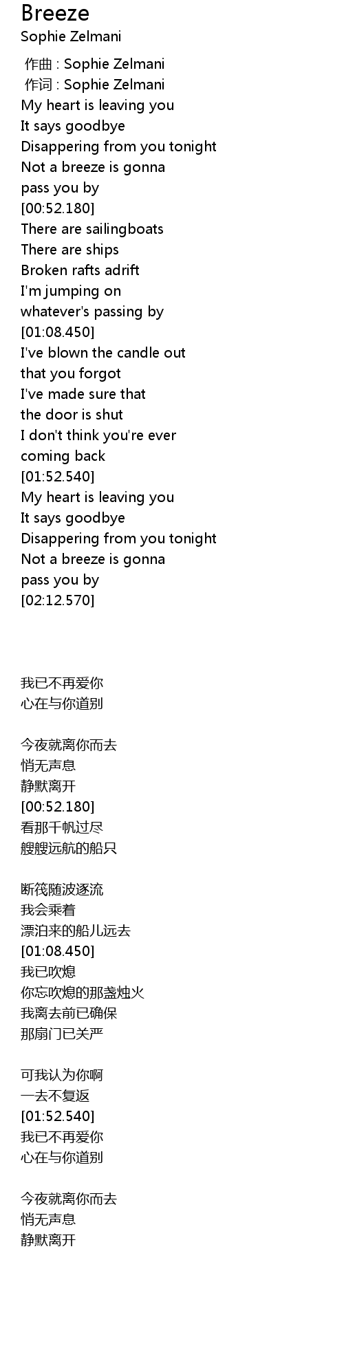 | [00:00.00] | 作曲 : Sophie Zelmani |