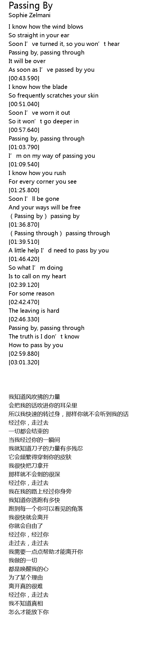 | [02:47.320] | Passing by, passing through |