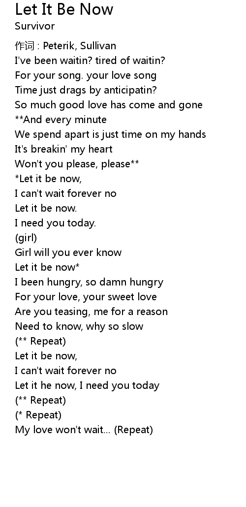 | *Let it be now, | |