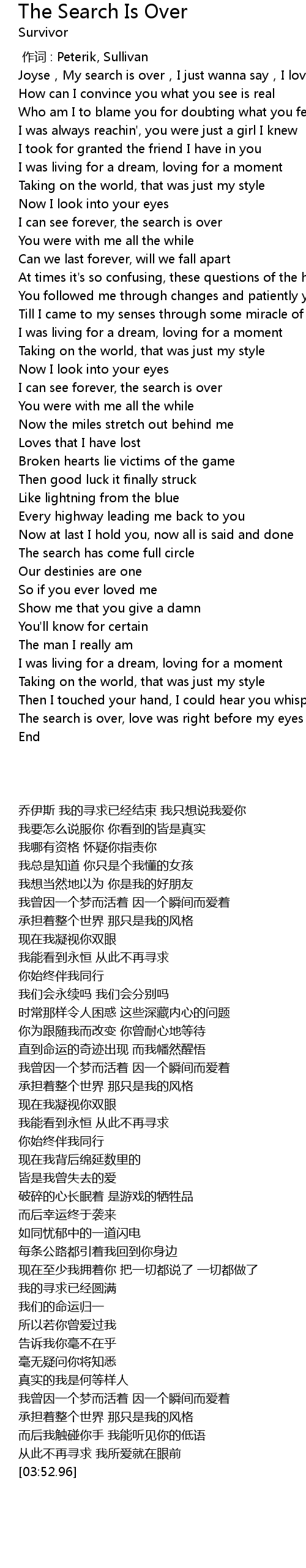 | 歌曲 | The Search Is Over |