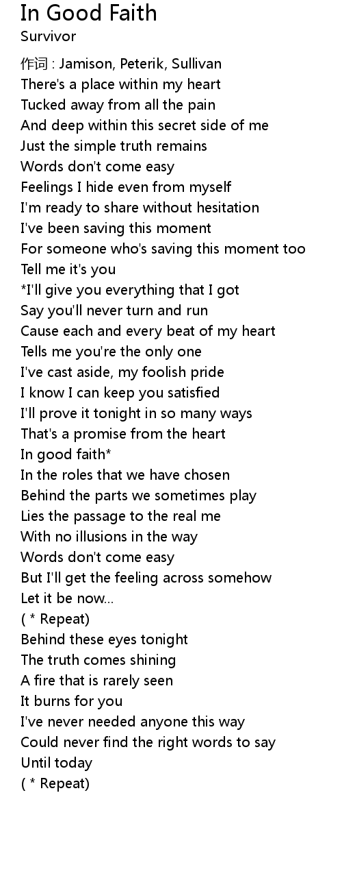 | 歌曲 | In Good Faith |