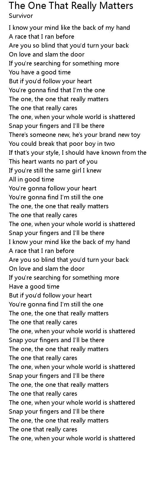 The one, the one that really matters |