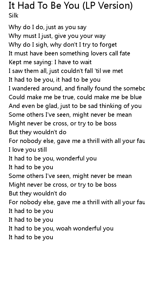 It had to be you, it had to be you |