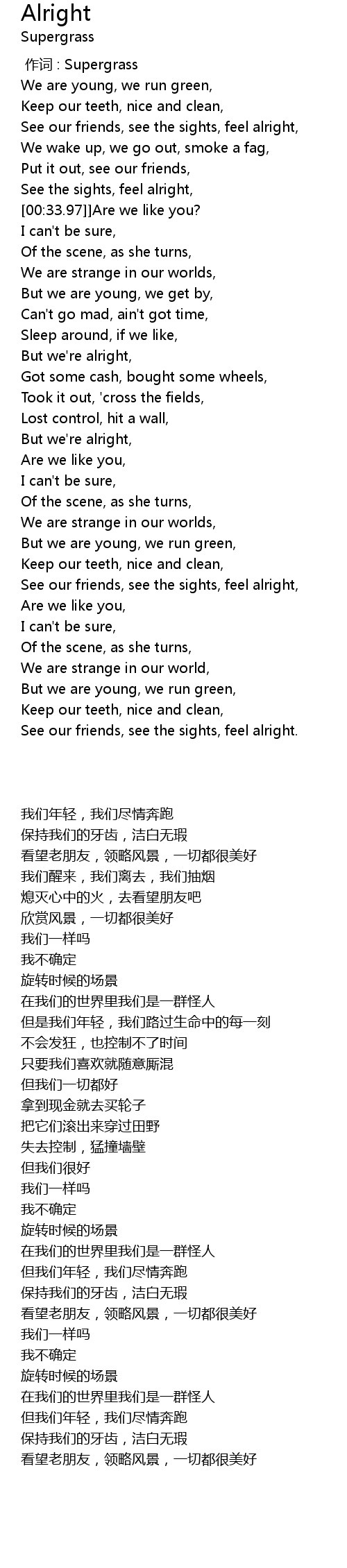 | [02:40.91] | See our friends, see the sights, feel alright. |