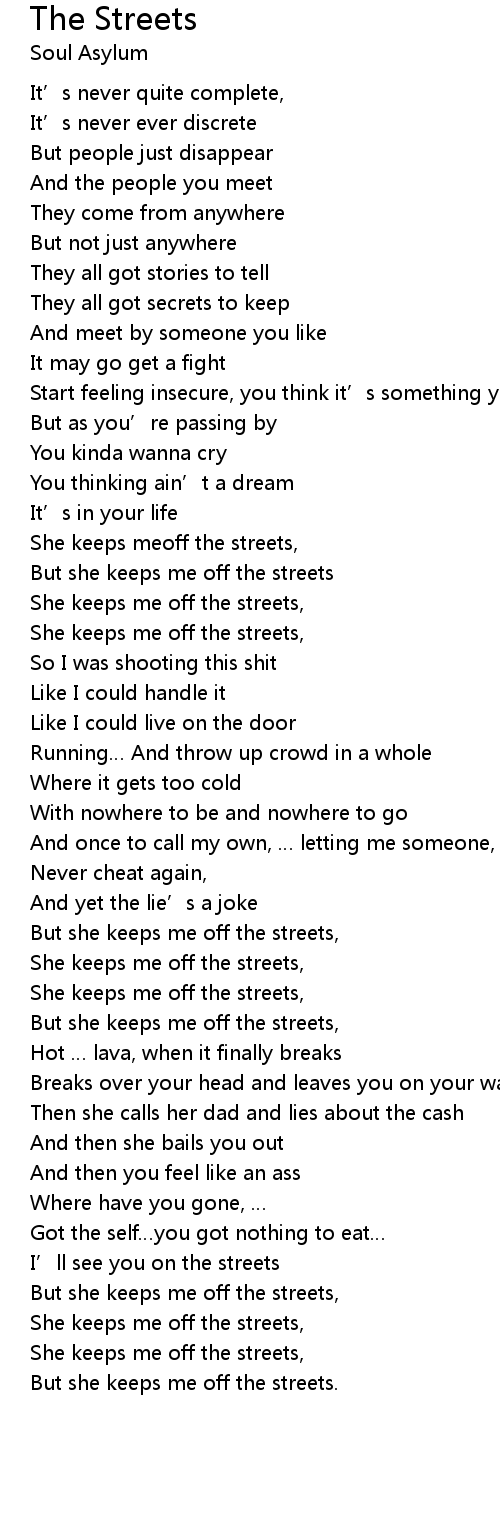 | But she keeps me off the streets | |