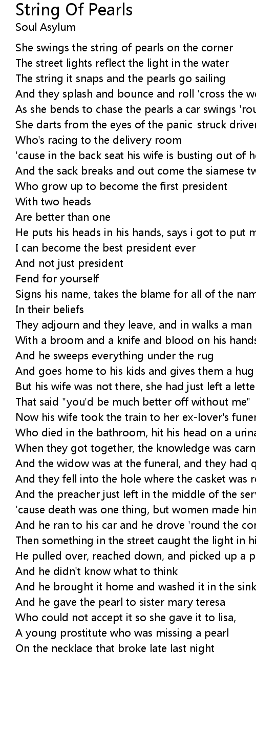 The string it snaps and the pearls go sailing |