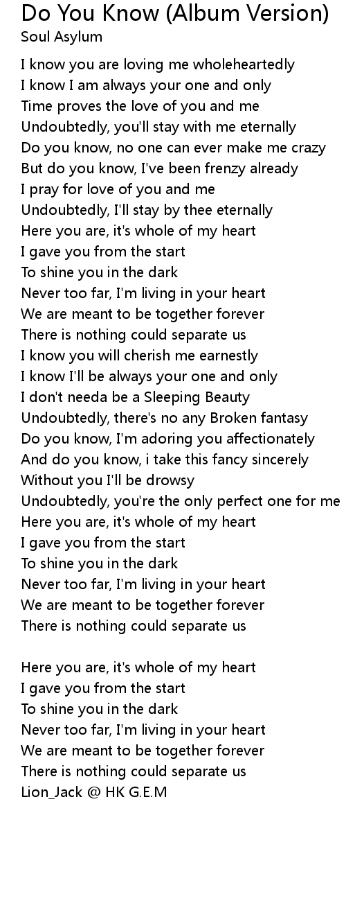 Do You Know (Album Version) 歌词