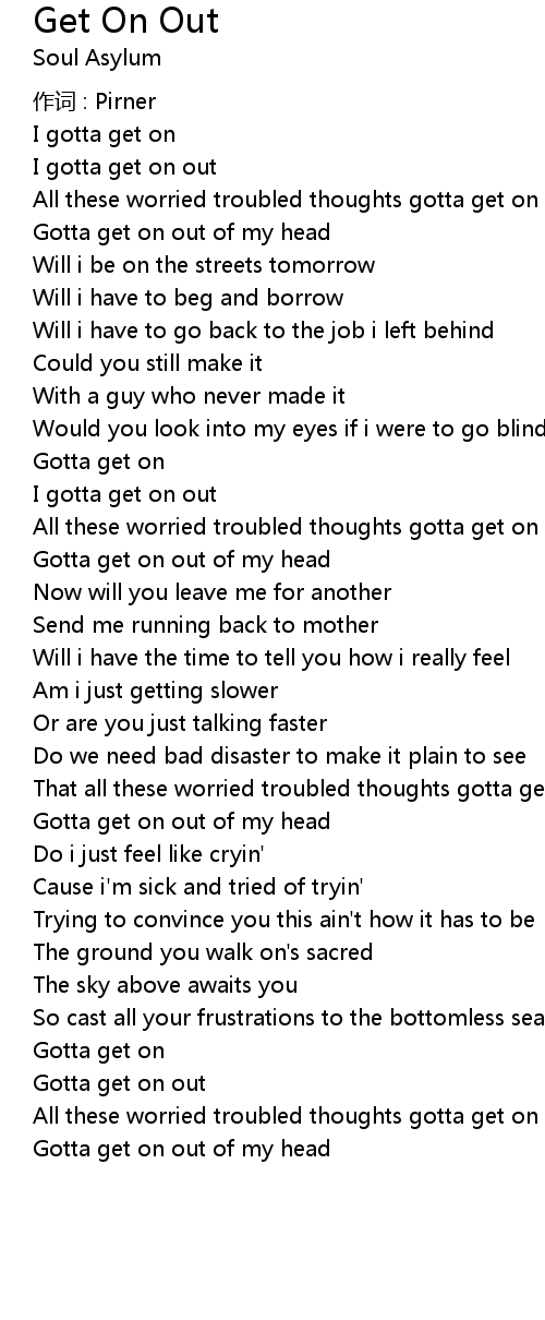 | That all these worried troubled thoughts gotta get on out of my head | |