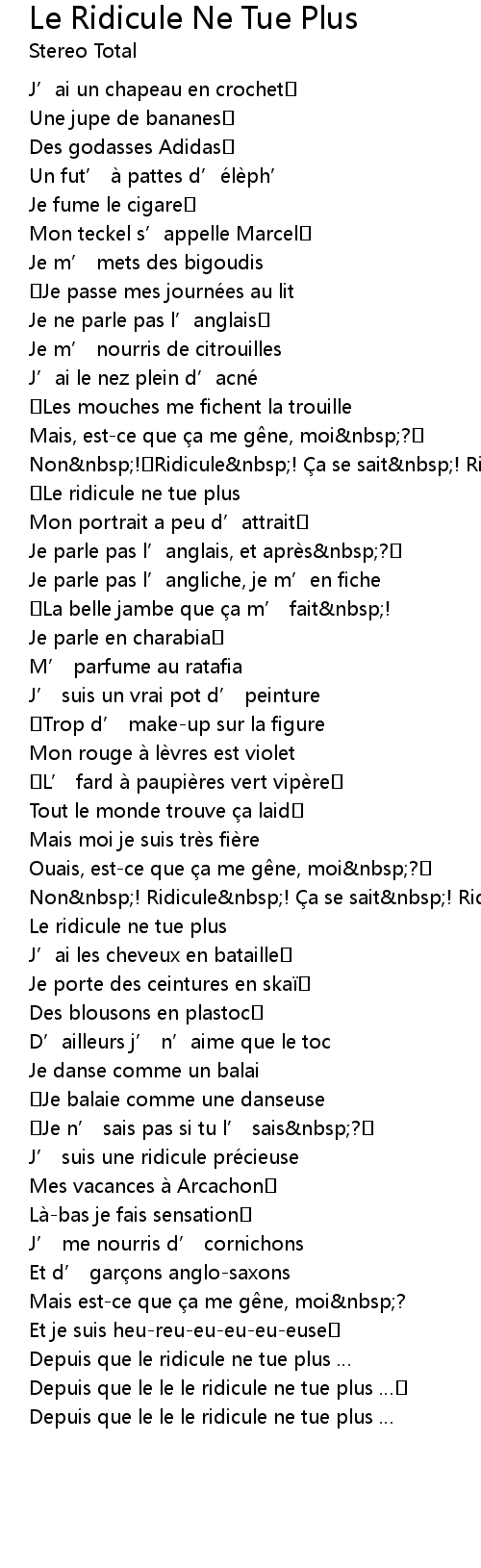 | Depuis que le le le ridicule ne tue plus | |