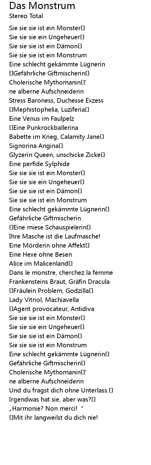 | Sie sie sie ein Ungeheuer | |
