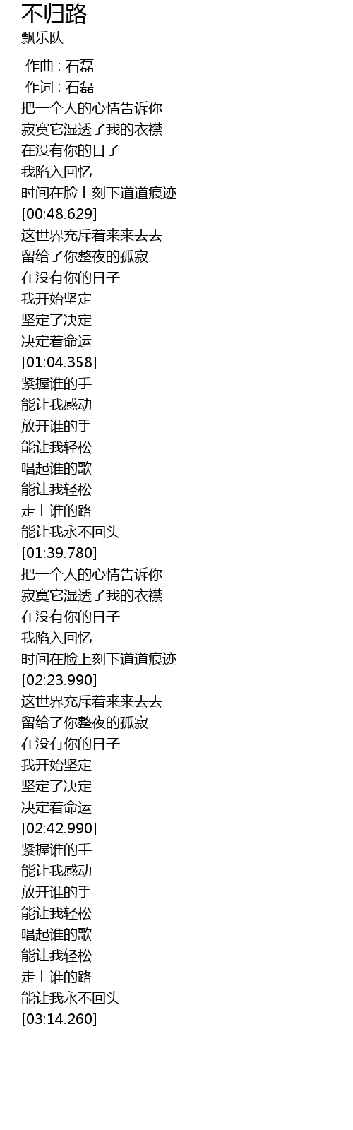 | [03:09.940] | neng rang wo yong bu hui tou |