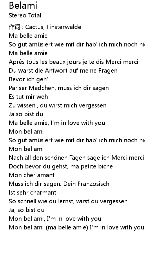 | Mon bel ami ma belle amie I' m in love with you |