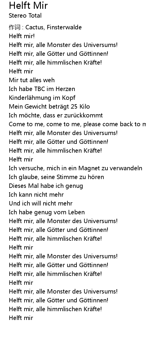 | 歌曲 | Helft Mir |