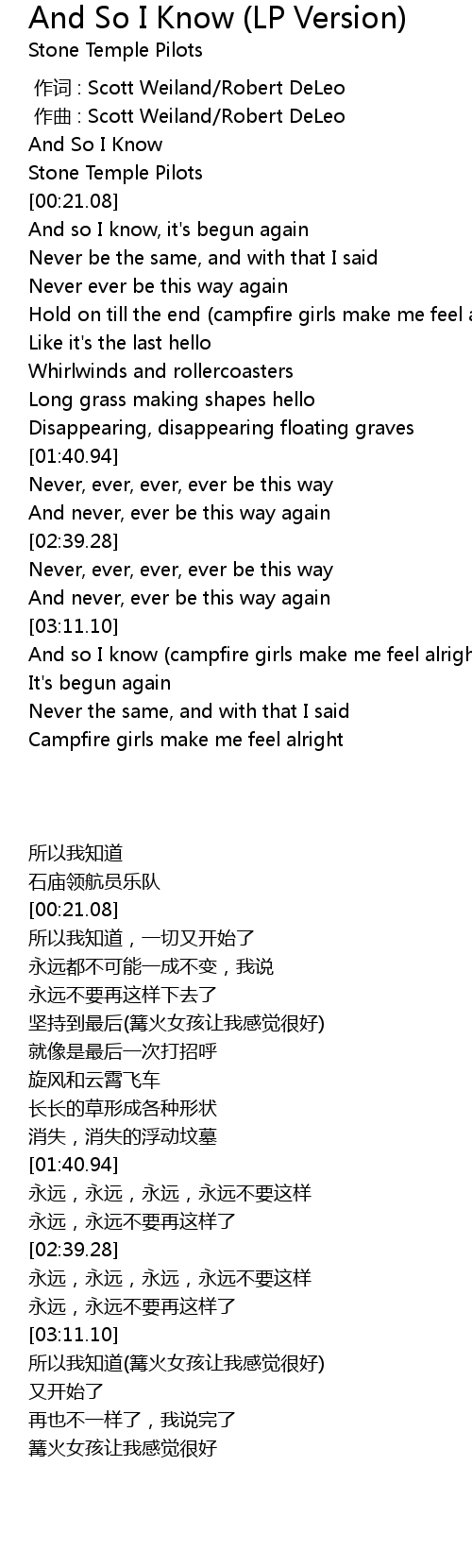 | [00:00.000] | 作词 : Scott Weiland/Robert DeLeo |