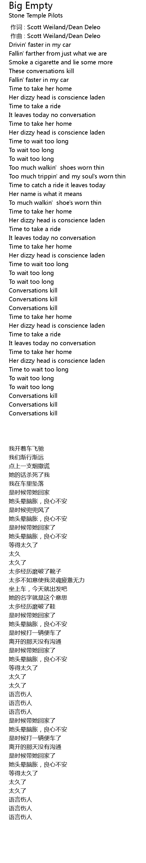 | [00:00.000] | 作词 : Scott Weiland/Dean Deleo |