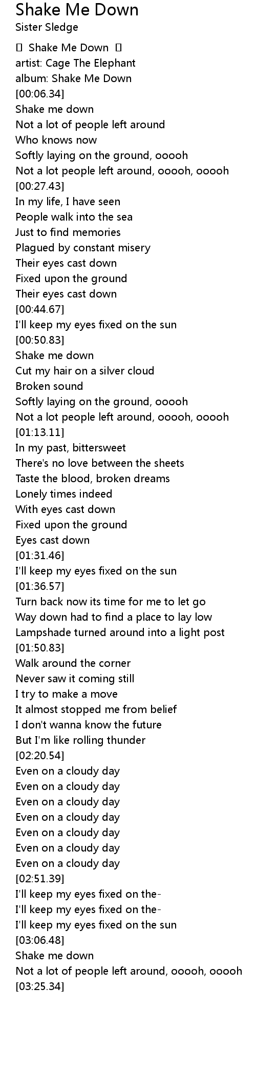 | [00:00.00] | ☜ Shake Me Down ☞ |