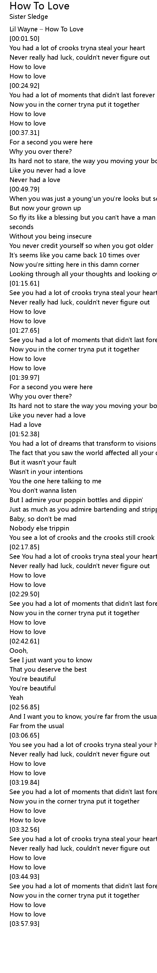 | [00:00.00] | Lil Wayne How To Love |