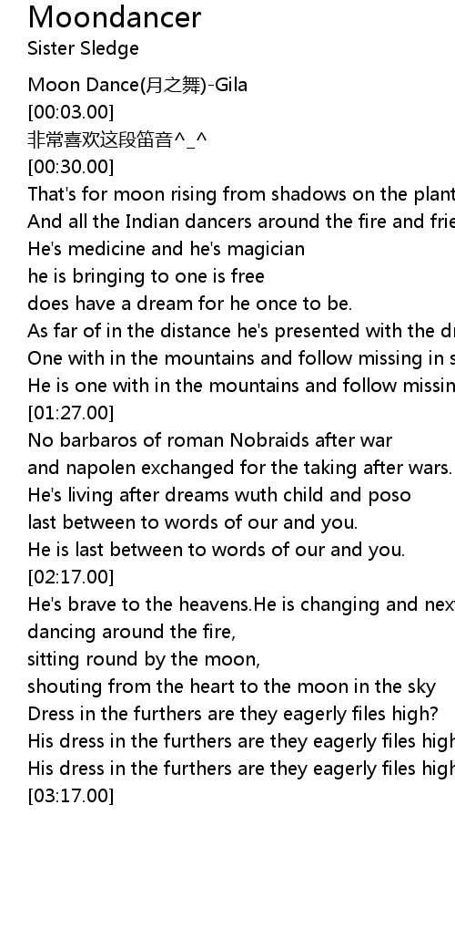 | [00:00.00] | Moon Dance yuè zhī wǔ Gila |