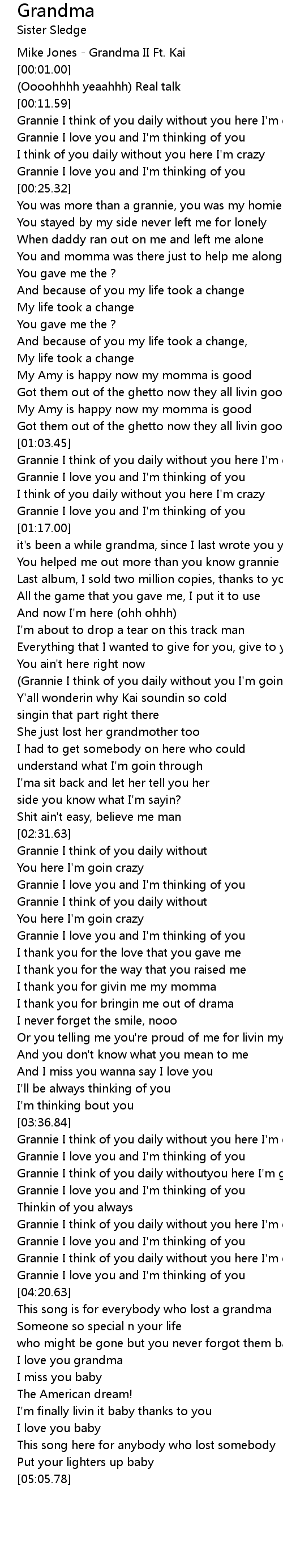 Grannie I think of you daily withoutyou here I'm goin crazy |