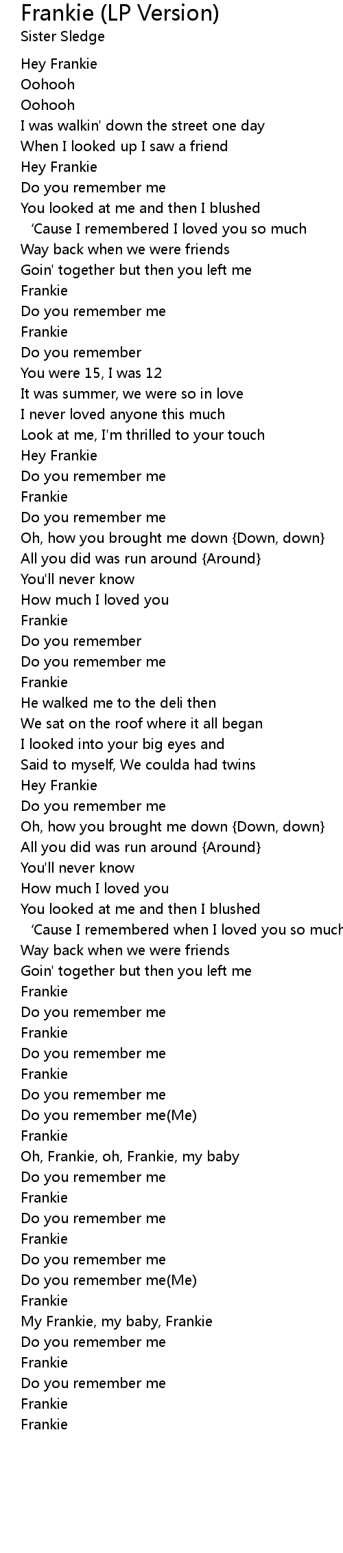 | 歌曲 | Frankie (LP Version) |
