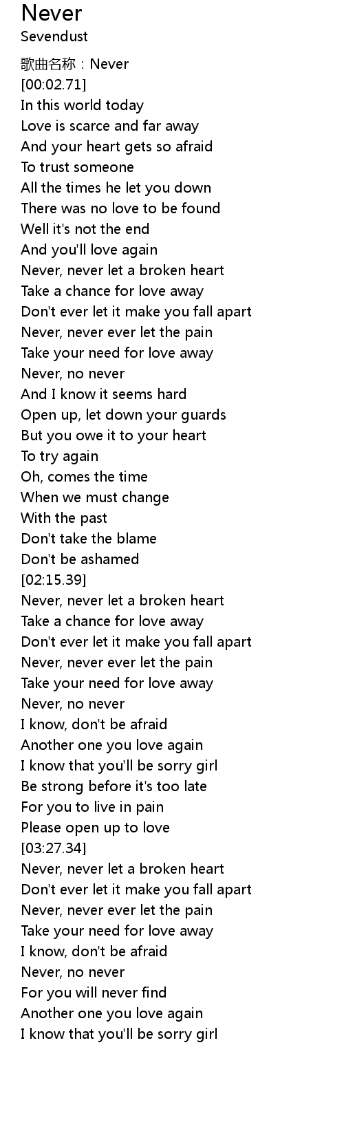 | [00:01.69] | 歌曲名称:Never |