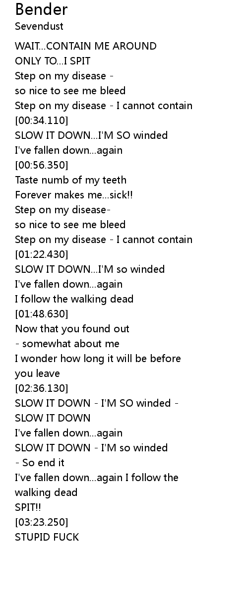 | [02:57.140] | SLOW IT DOWN I' M so winded |