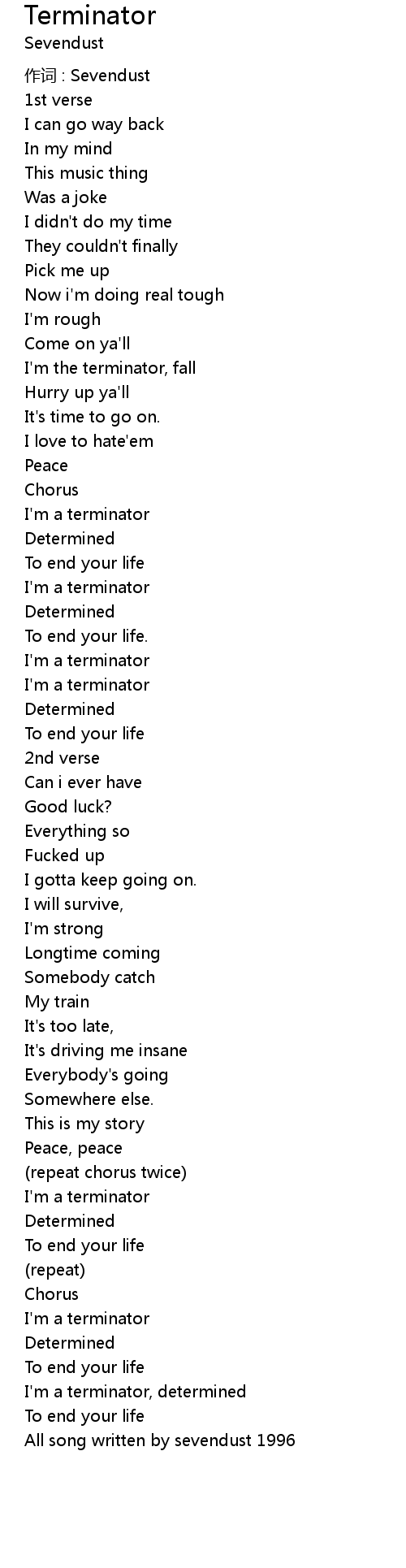 | I' m a terminator, determined | |