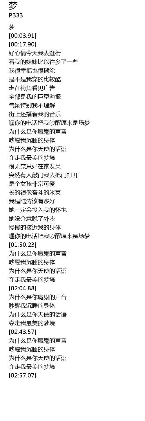| [00:45.42] | ō nǐ de diàn huà bǎ wǒ chǎo xǐng yuán lái shì chǎng mèng |
