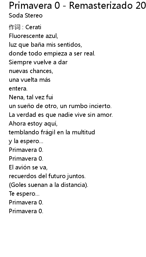 | 歌曲 | Primavera 0 - Remasterizado 2007 |