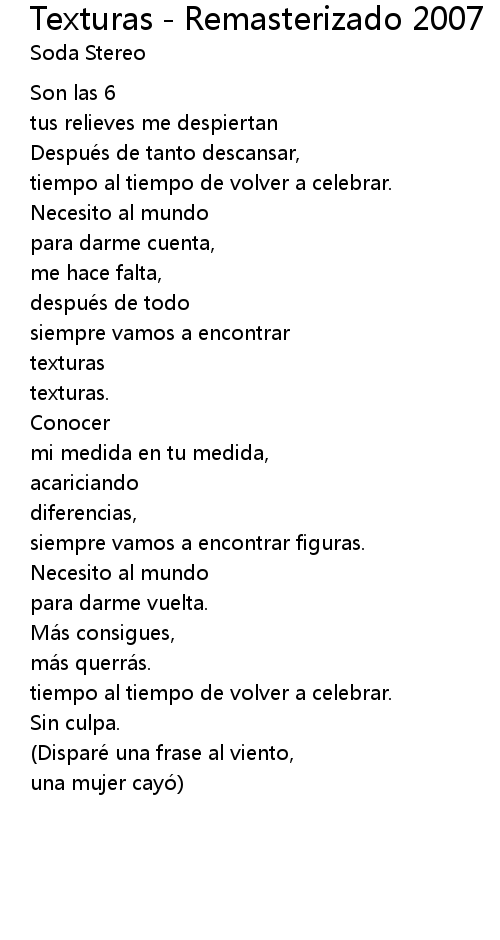 | 歌曲 | Texturas - Remasterizado 2007 |